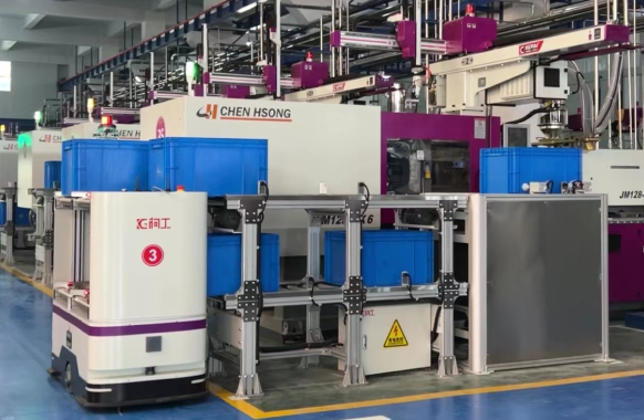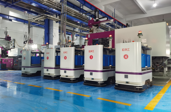 以注塑工厂AGV智能管理系统为核心管理软件,以四工位AGV、自动换箱机构和自动升降机等硬件为载体,通过全面调度,实现与注塑机联机自动呼叫,产品自动收集、下线、转运、跨楼层运输、暂时分类存储等功能,同时完成数据的适时采集与处理,让载具、工位、仓位、物料实现全面数字化。