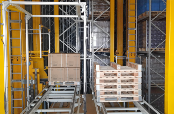 半成品与成品等物料于五层楼间自动存储、分拣与搬运;