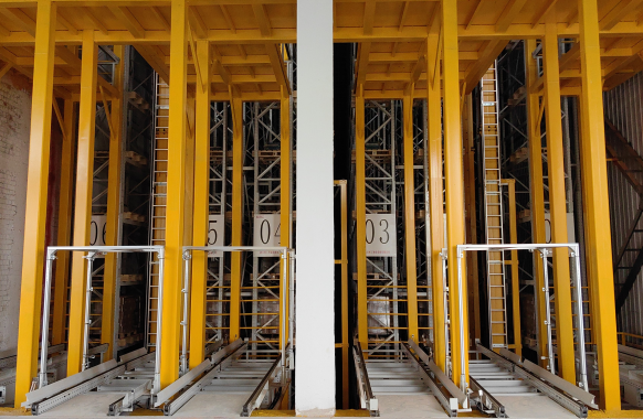原材料、器具、半成品与成品等多种物料于五层楼间一体化智能存储、分拣与搬运。