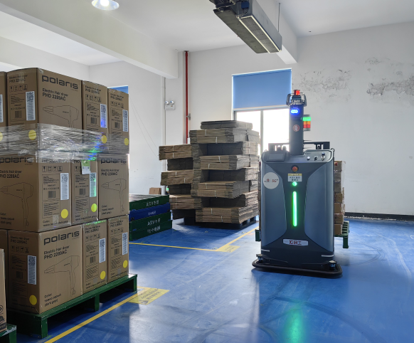 柯工智能打造了包含基于自然景物导航的集群式AGV和自主研发的上位机管理系统、仓储管理系统等在内的厂内物流与仓储整体解决方案。在自研软件的全面调度下,以激光导航堆高AGV解决跨楼层运输问题,以激光导航举升AGV配合高架库解决仓储空间不足的问题。