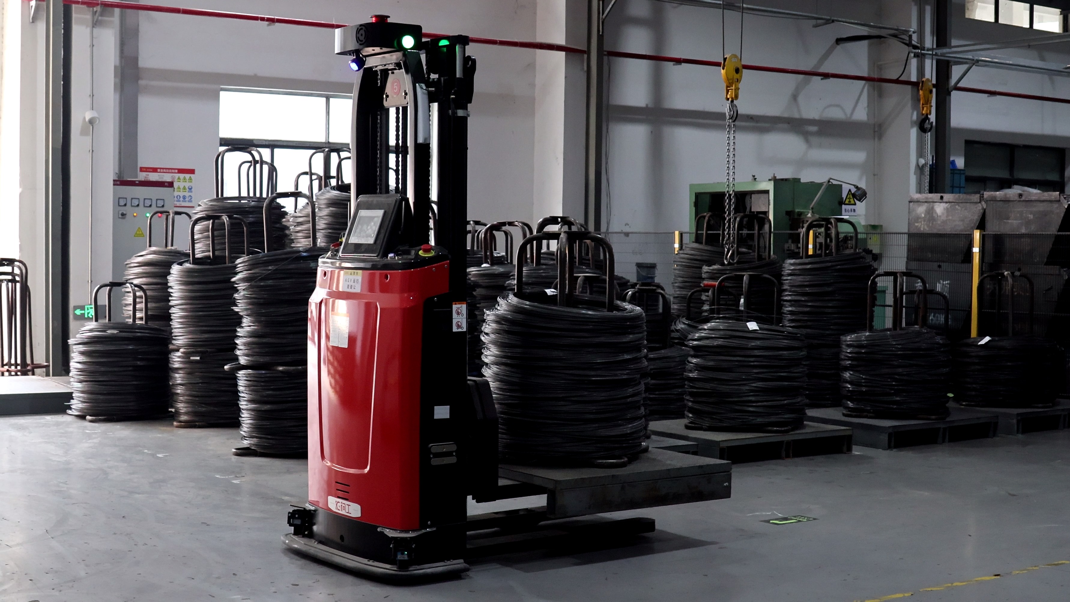 柯工智能打造了包含数据管理系统、机器人调度系统和多型号AGV在内的车间数字化方案,组成了线材库、线材上线、自动换桶、半成品库等多个管理功能模块,充分满足生产车间自动化、数字化管理需求。