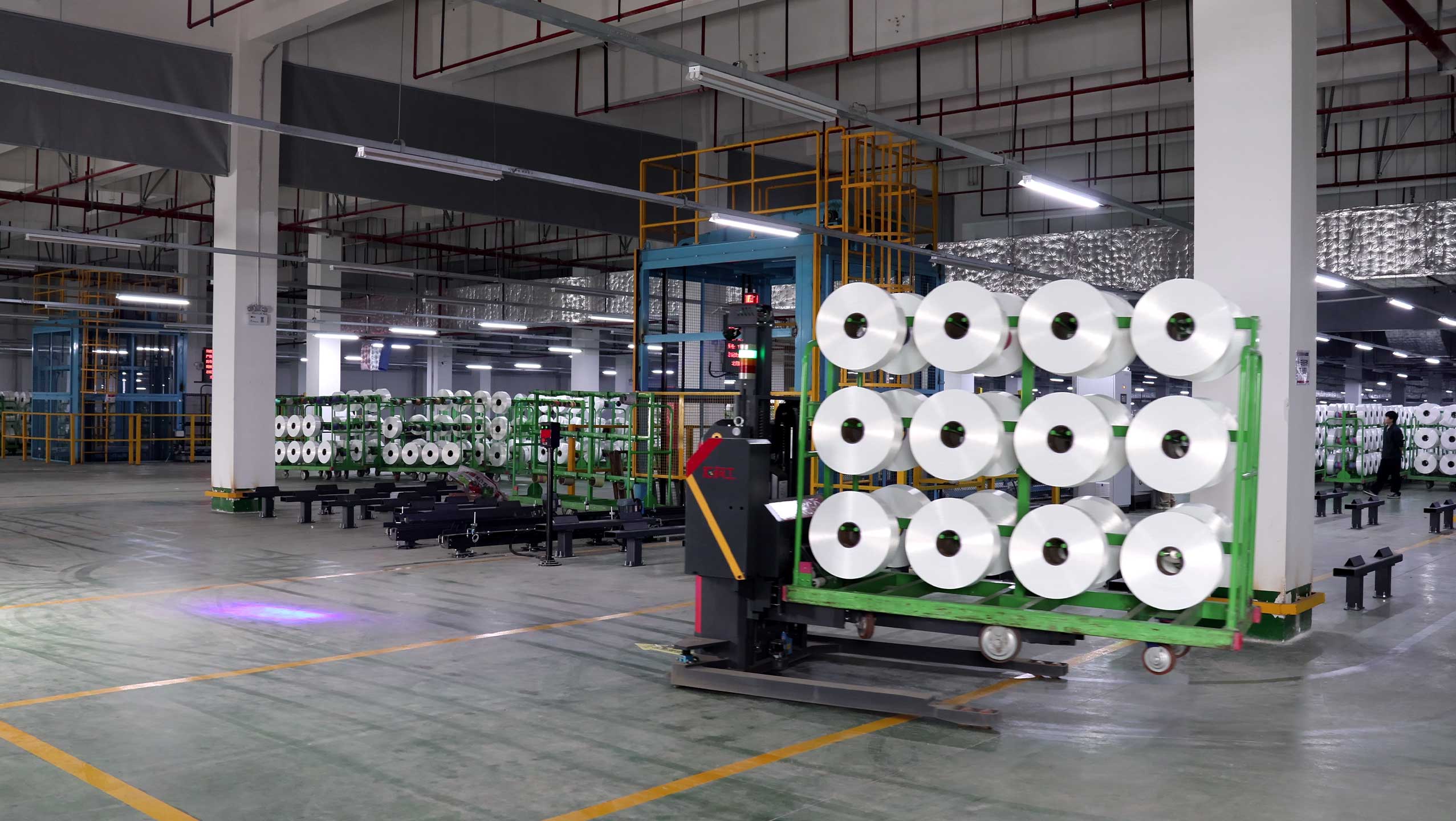 在化纤长丝工厂的平衡间中,人工推丝车转运易磕碰、使用纸质单据易错料混料是常见的管理难题。为解决平衡间的质量管理、余料管理问题,客户选用了柯工自动丝车管理系统,实现平衡间的自动化工程和数字化管理。
