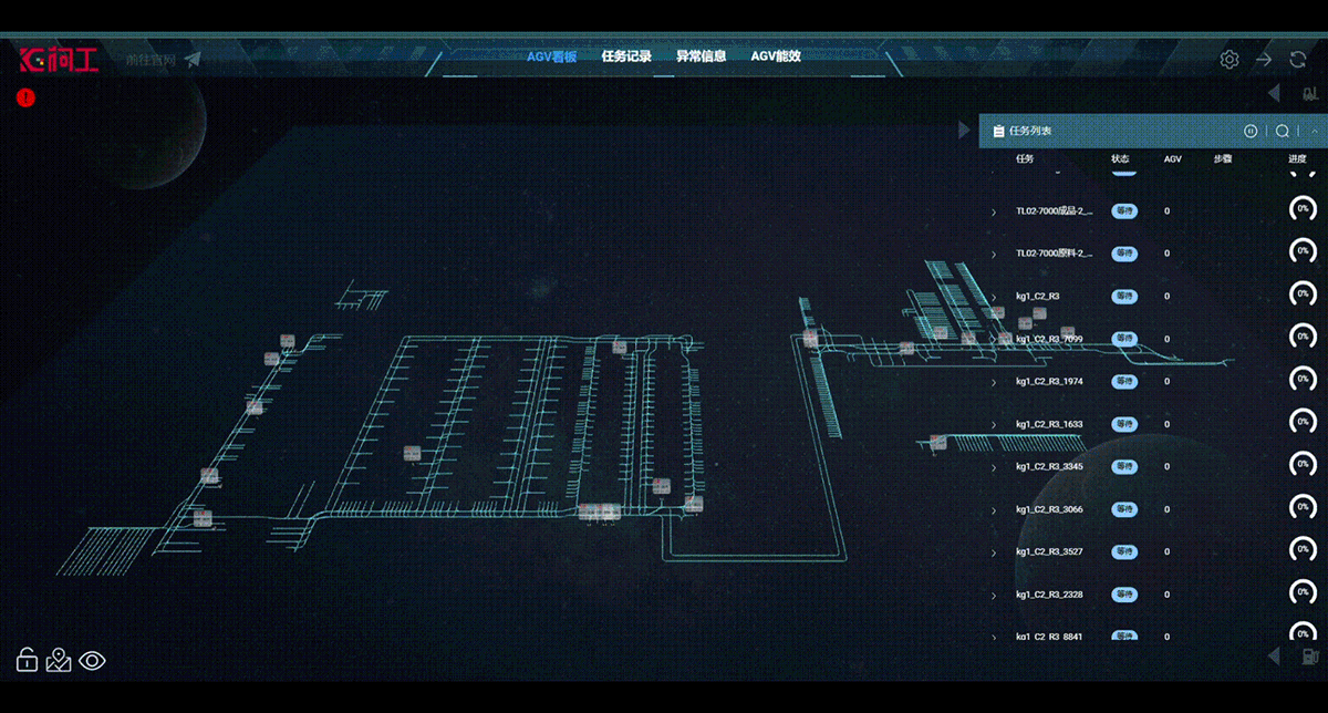 柯工智能调度系统 KGAS 是一套对各类型移动机器人和周边自动化设备管理的基础数据管理系统,可根据客户个性化场景定制调度逻辑,为客户解决流程复杂和场景多变的痛点。系统在路径规划、交通管制、任务分配、规避障碍物、地图绘制等方面具有高可靠和高稳定性,为机器人在现场安全运行保驾护航。且提供标准API协议,易于客户系统的对接,保证数据链的完整性和真实性。